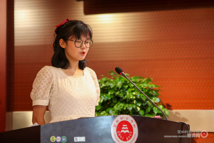 教育学院2018级小学教育2班的李炆烊代表老生发言,她说三年来的大学生活充实而有趣,扎实而高效,给她留下了无数美好的回忆和满载收获的喜悦。她一直牢记“要给学生一杯水,教师要有一桶水”的理念,在学校的培育下,努力学习专业知识,积极参加丰富多彩的校园文化和社会实践活动,获得了令人称赞的成绩,也增长了知识和才干。她希望学弟学妹们要尽快转变角色、积极调整心态,从而完成学习和生活方式上的转变;在“自由”中坚守本心,自觉自律,在最好的年华里把握时机,实现自我,珍惜每一个锻炼的机会;保持热情和足够的行动力;用真诚和善意与人相处,用踏实和认真不断进步,用信心和毅力直面挑战,用勇敢和坚强面对生活。