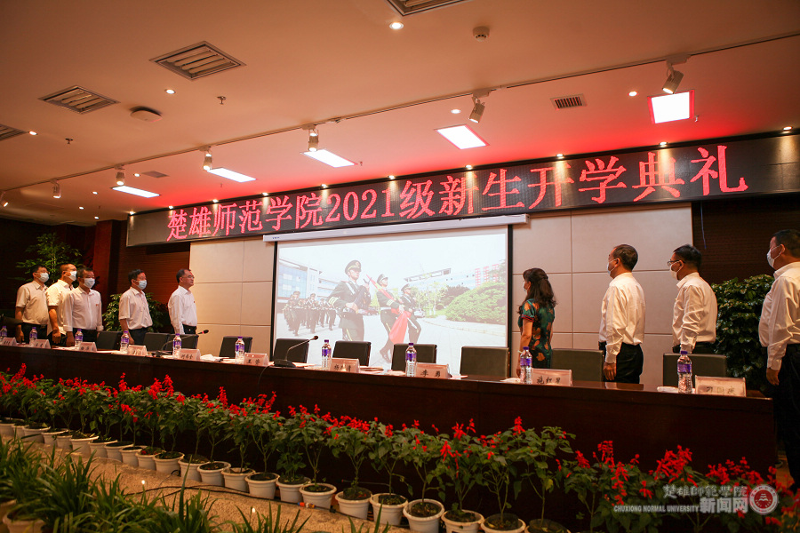 秋意渐浓,青春正好。9月6日上午,学校举行2021级新生开学典礼。根据疫情防控要求,本次开学典礼采用线上线下结合的方式,教师进修综合楼第一报告厅设主会场,各学院以班级为单位设分会场,采用视频直播的方式进行。学校主会场由学校全体党政领导,学术委员会主任,各相关职能部门、教辅部门负责人,各学院新生代表和辅导员参加共同参加;分会场由各学院党政班子成员、辅导员及团委书记、2021级全体新生及班主任以班级为单位观看现场直播。