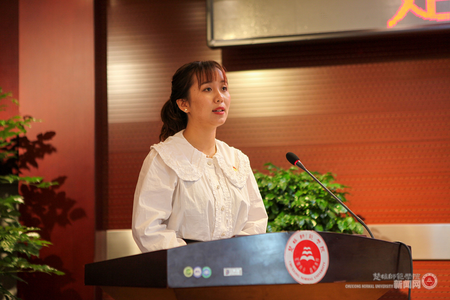 来自管理与经济学院2021级市场营销班的何洋硕,代表2021级全体新生发言。她说楚雄师范学院是一所历史悠久、独具特色的大学,一纸楚师的录取通知书,上面写满楚师对新成员的谆谆叮嘱,那是长者的殷切关心;新生群里班主任、辅导员和学长学姐的耐心解答、指点迷津,让她们体会到了楚师亲切的人文关怀;迎新现场、新生宿舍,学校、学院领导、老师的问候和叮咛、学长们的热情帮助,更是让她们感受到了楚师亲民、务实、上下一心的风气。