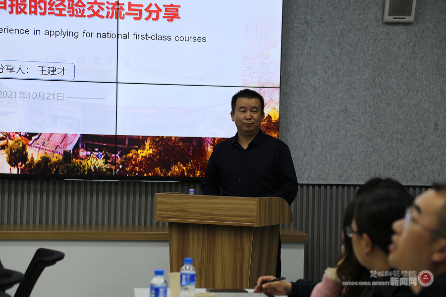管理与经济学院李贵平院长、语言文化学院马建荣院长、美艺学院王建才院长以及管理与经济学院梅莹老师分别从一流课程的组织申报、课程体系的创新与教学方法的改革、社会实践类一流课程的申报以及课程创新与考核成效等方面介绍了一流课程建设的经验和思考。教务处彭燕梅处长对近期教学工作进行了安排,并就一流课程建设的全面深化谈了下一步打算。