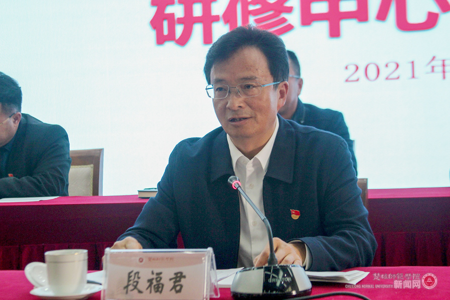 楚雄州教育体育科学研究所所长自洪明作表态发言;楚雄师范学院马克思主义学院院长徐光辉汇报了落实州委宣传部与楚雄师范学院2021年度共建马克思主义学院计划的主要情况,并就推动“楚雄州大中小学思政课一体化研修中心”建设作了表态发言。