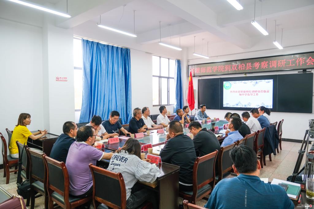 当天下午,调研组前往妥甸中学考察调研并召开座谈会。双柏县教体局、人社局、工信局领导、妥甸小学和妥甸中学校长和我校毕业生代表参加座谈会,座谈会由双柏县人民政府副县长普学昌主持。