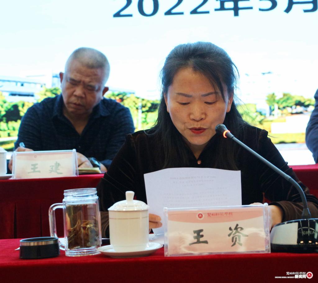 校长王资作总结讲话并强调,各学院(部门)要严格落实本次会议要求。一要提高思想认识,树立正确工作态度,深入把握我校2022届毕业生就业创业工作的目标任务,认真分析、迎难而上,以高度责任感做好就业工作。二要制定切实可行的工作方案,建立规范化、标准化就业工作制度及工作流程,抓好各项任务和政策落实。三要全员参与,积极行动,学校的所有部门都承担着立德树人的重任,都要提高认识、强化担当,坚持疫情防控与就业工作统筹推进,全力以赴,攻坚克难,加强资源共享和协同联动,因时而变、因势而新,为毕业生充分、及时、高质量就业保驾护航,全力做好2022届毕业生就业创业工作。