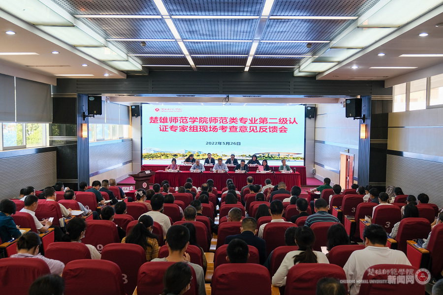 5月26日,学校在信息楼第一报告厅举行教育部师范类专业第二级认证专家组现场考查意见反馈会。联合认证专家组全体成员,云南省教育评估院相关人员,楚雄师范学院全体校领导,学校教学督导团成员和教学指导委员会委员,各二级学院党政主要负责人,各职能、教辅部门主要负责人,师范类专业负责人及教师代表参加会议。会议由联合认证专家组组长兼学前教育专业专家组组长柳友荣教授主持。