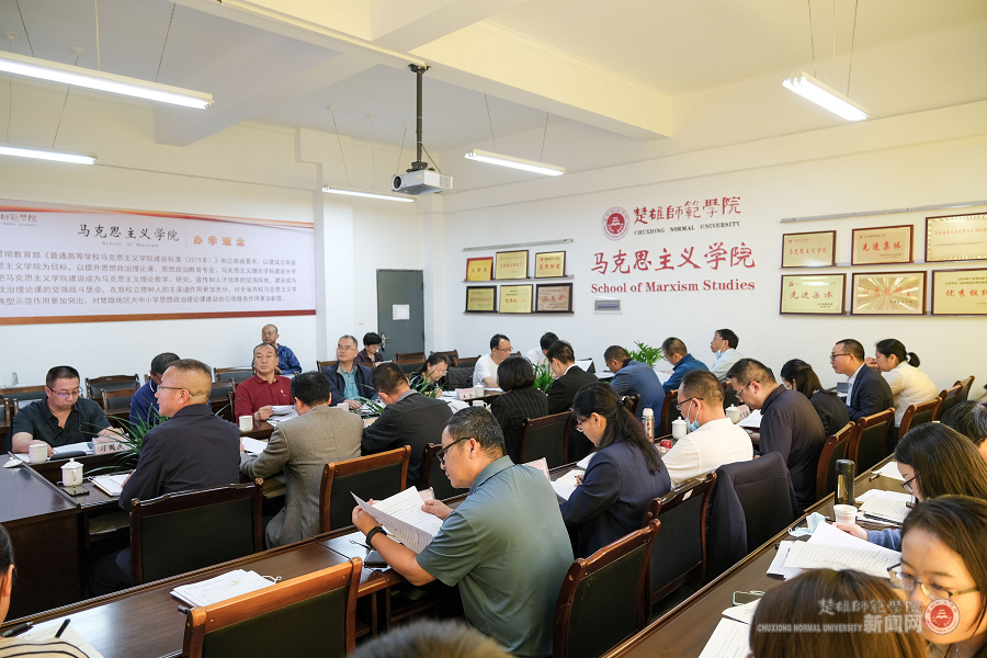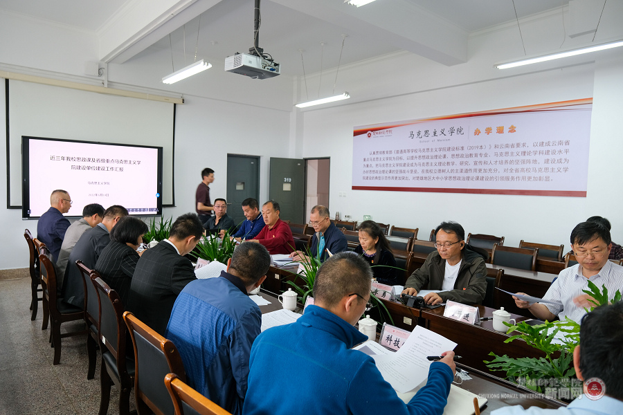 参会领导实地调研考察了马克思主义学院办公场所、办学条件、文化长廊,详细了解了马克思主义学院教师的工作情况。会上,马克思主义学院负责人苏斐然详细汇报了学校近三年的思政课建设情况,针对存在的困难问题提出了积极的建议和改进措施,对需提请学校研究审定的相关工作进行了说明。学校思想政治理论课建设领导小组办公室主任刁国庆对提交会议讨论的《楚雄师范学院深化新时代思想政治理论课改革创新实施意见》进行了说明,提出工作建议。