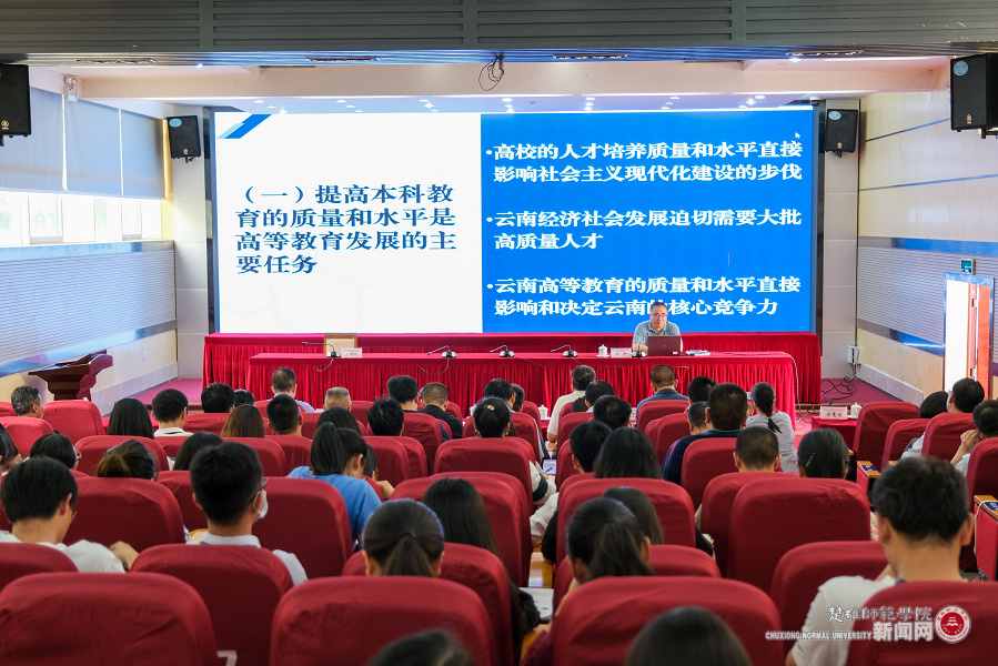2022年6月23日下午,学校在信息中心第一报告厅举办了楚师教学论坛第四期讲座。本次论坛由云南省教育厅原副厅长邹平教授以“深化学分制改革 加快专业建设步伐”为题作讲座。云南省教育评估院副院长司慧迎、科长李秀泉出席,全体学校领导、学校教指委、督导团、各职能部门负责人、各二级学院院长、书记、教学副院长、专业负责人、教研室主任、教学办主任、相关教师等190余人参加。讲座由校长王资主持。