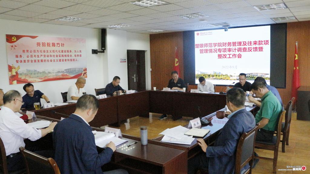 2022年9月13日下午,在尚行楼第六会议室召开《楚雄师范学院财务管理及往来款项管理情况专项审计调查》反馈暨整改工作会议。