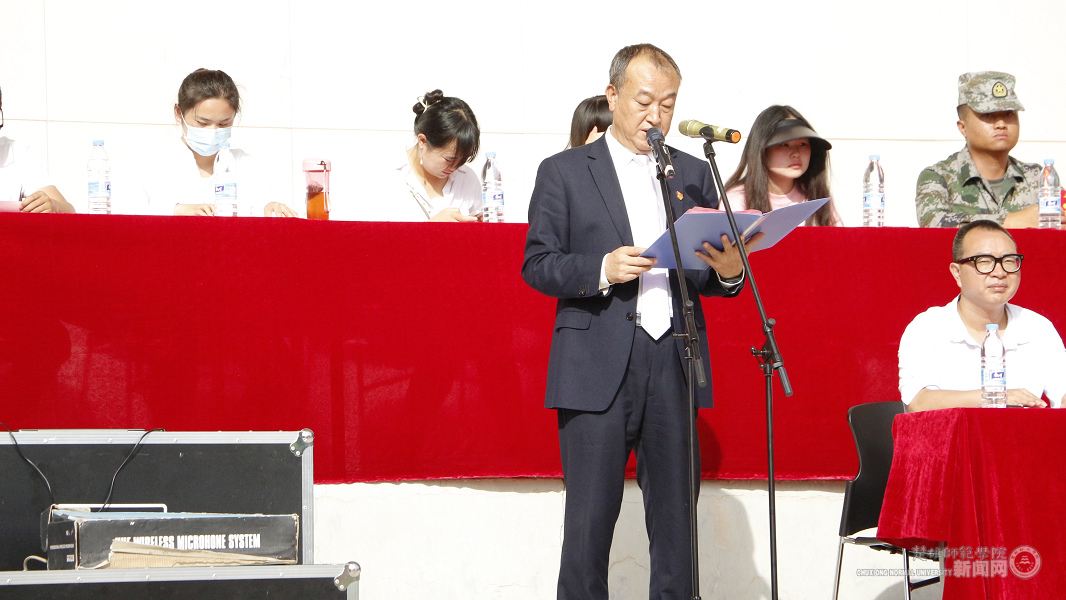 杨顺清副书记代表学校军训工作领导小组作动员讲话,他强调,大学生作为优秀青年的代表,是巩固国防,维护国家主权、安全的重要后备力量,依法履行兵役义务,在校期间接受军事训练,学习掌握基本的军事理论知识和军事技能,是青年大学生义不容辞的责任。同时,对全体参训新生提出了四点希望。一是提高认识,端正态度。二是尊重教官,虚心学习。三是严格训练,保质保量。四是团结友爱,互帮互学。希望全体新生经过刻苦的训练,能够收获军事技能、军事知识,培养良好的精神面貌和坚韧的意志品质,充分展现新时代大学生的良好精神风貌。