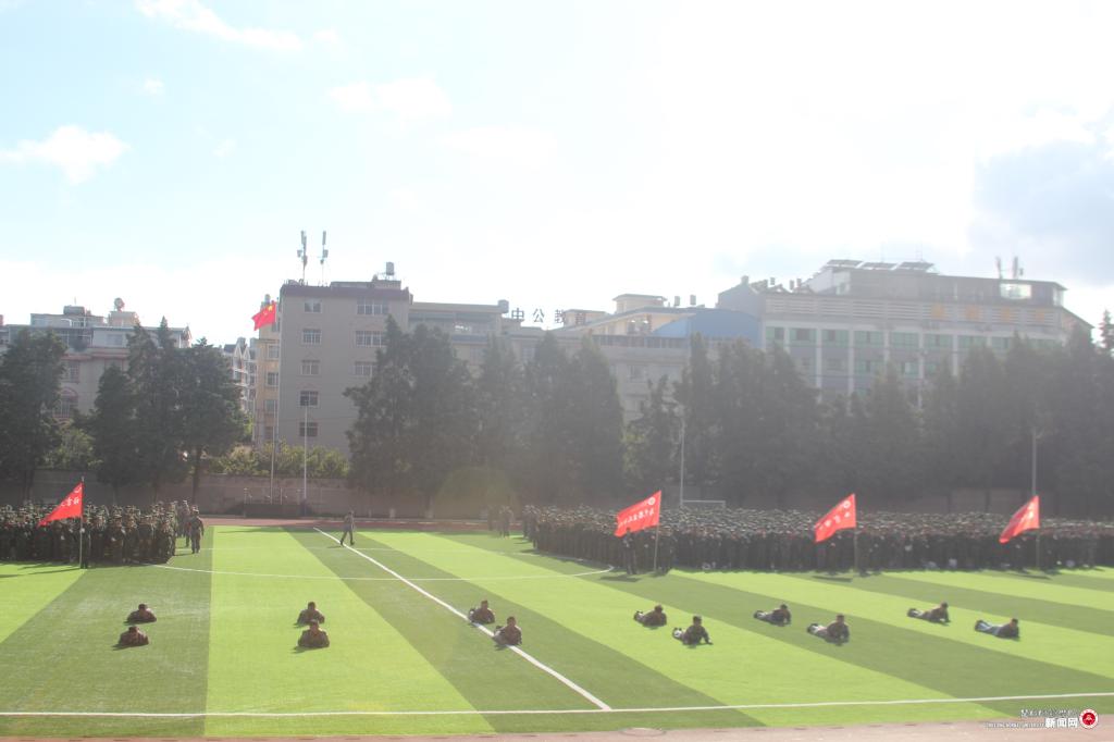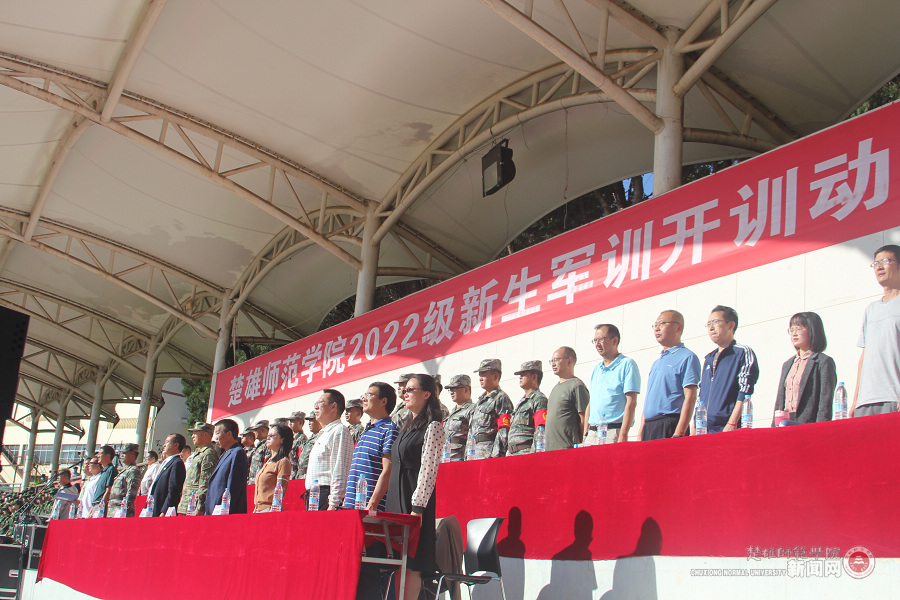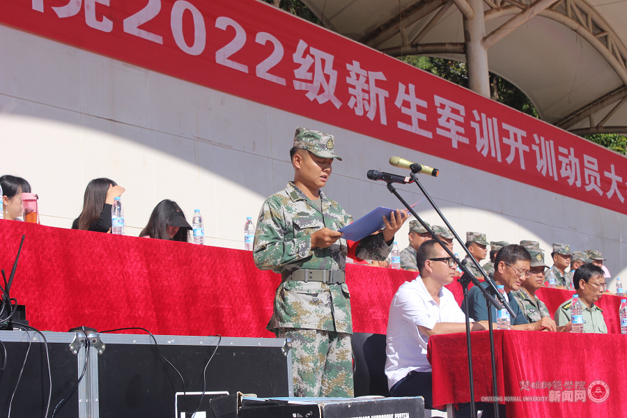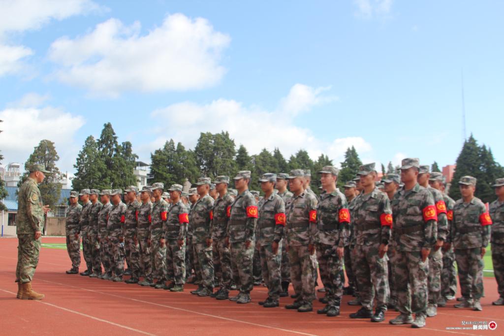 经过两天集中的军事理论教学,9月19日上午,我校在雁塔校区田径场举行了2022级新生军训开训动员大会,学校党委副书记杨顺清,学校党委委员、副校长陆华,楚雄军分区战备建设处处长、州学生军训办公室主任李建平上校出席会议,学校武装部、校团委相关人员、全体承训教官、各学院分管学生工作领导及带训教师参加了大会,大会由学校武装部部长李飞主持。