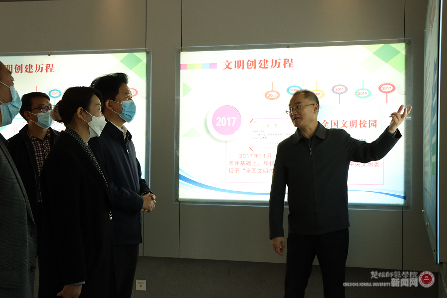 杨红琼一行实地走访了学校图书馆彝族文化数字化博览传习中心、全国文明校园创建展厅。